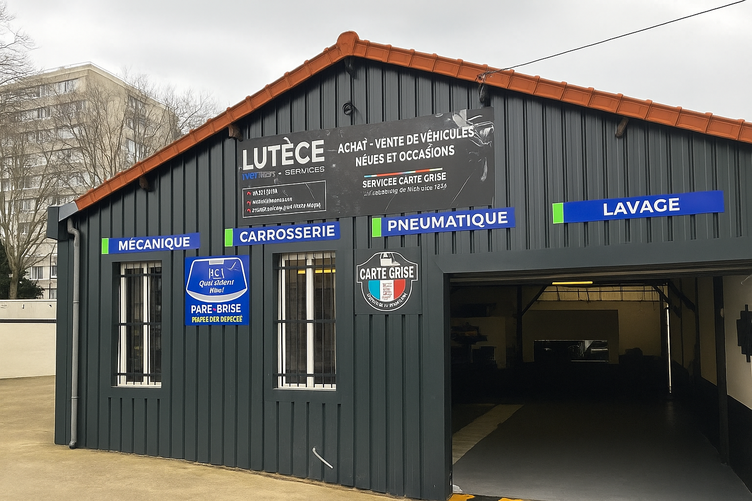 Nous réalisons la mécanique générale (vidange, freins, distribution…), le montage de pneus, la carrosserie, la peinture, et le lavage auto.